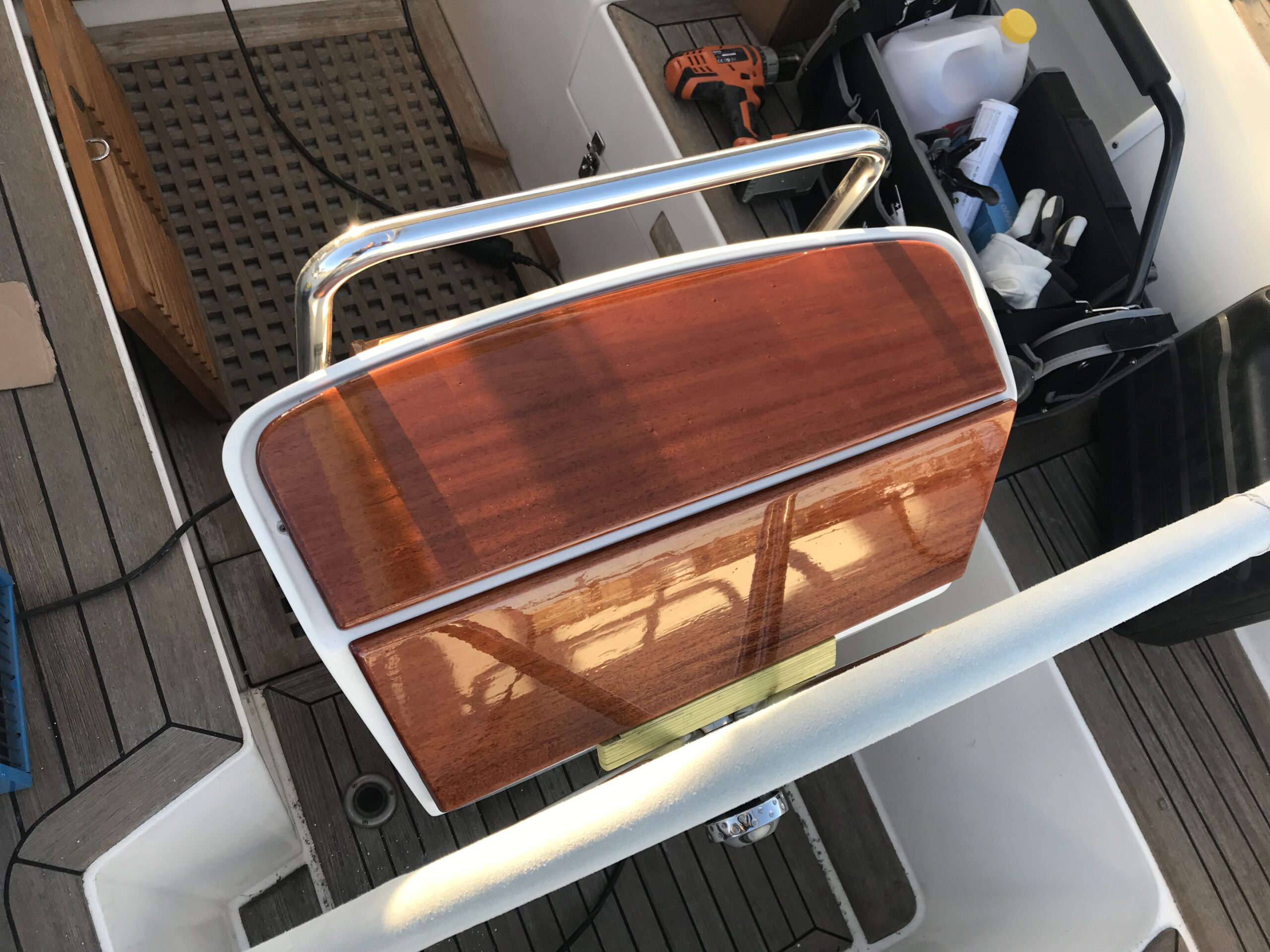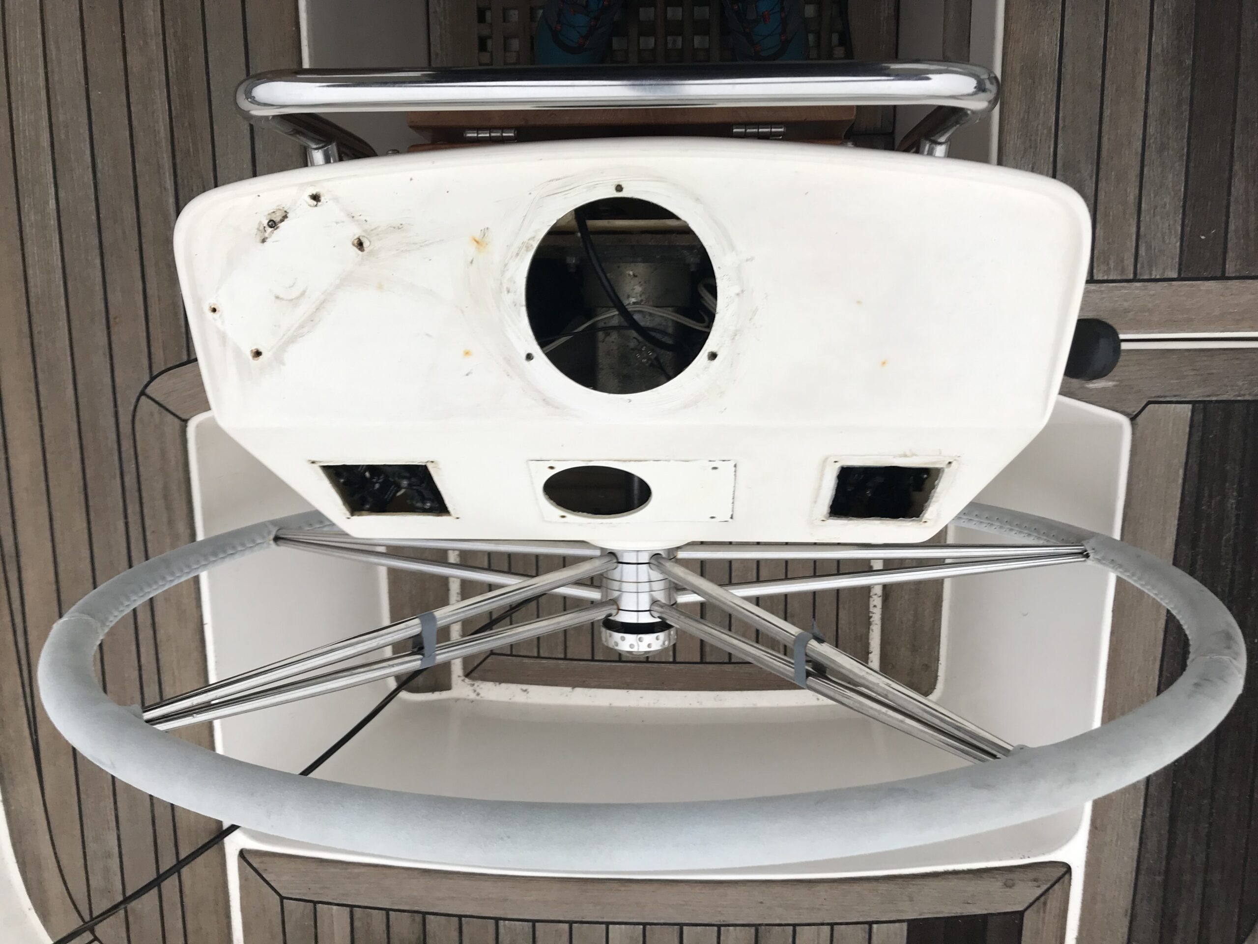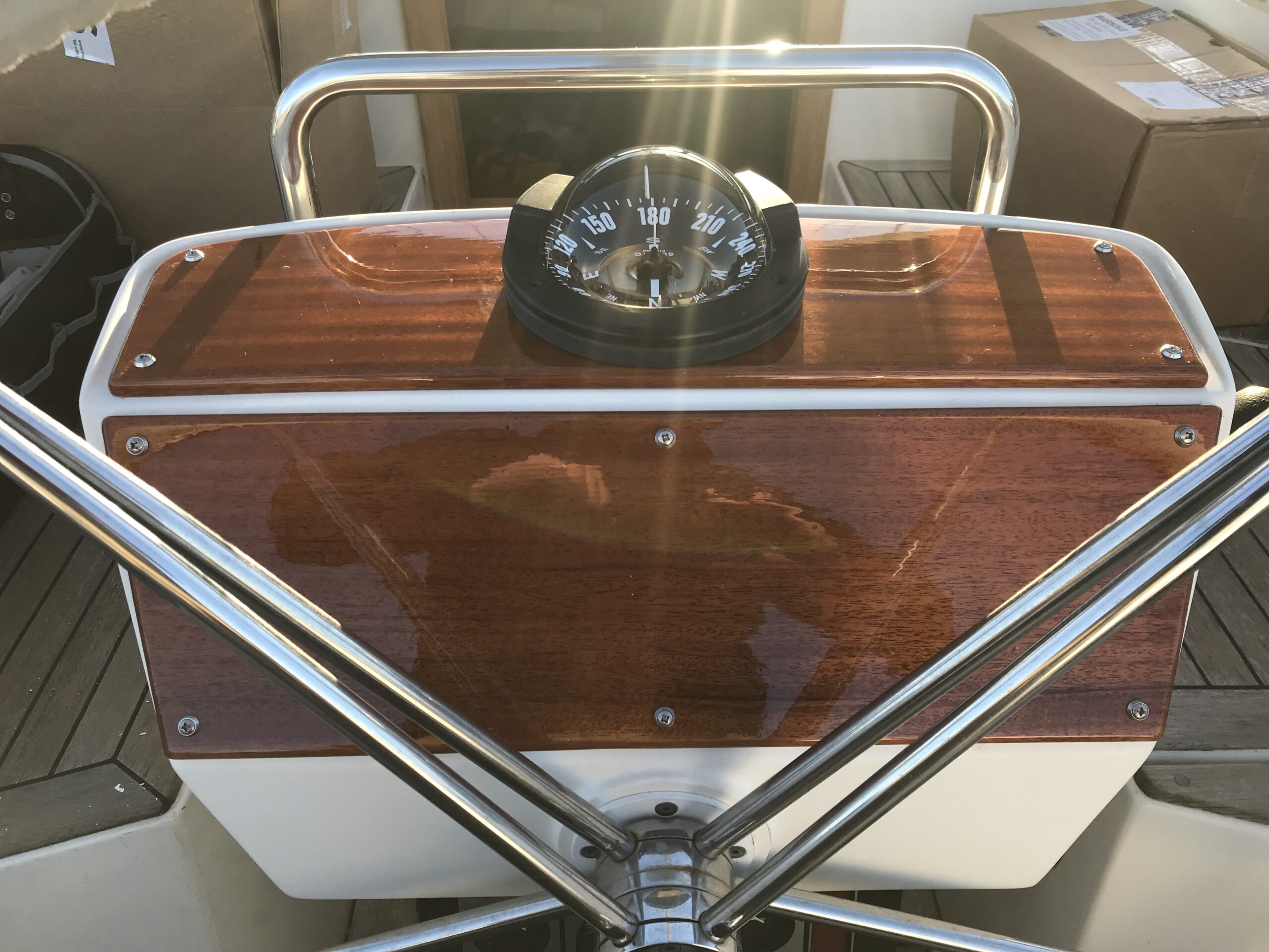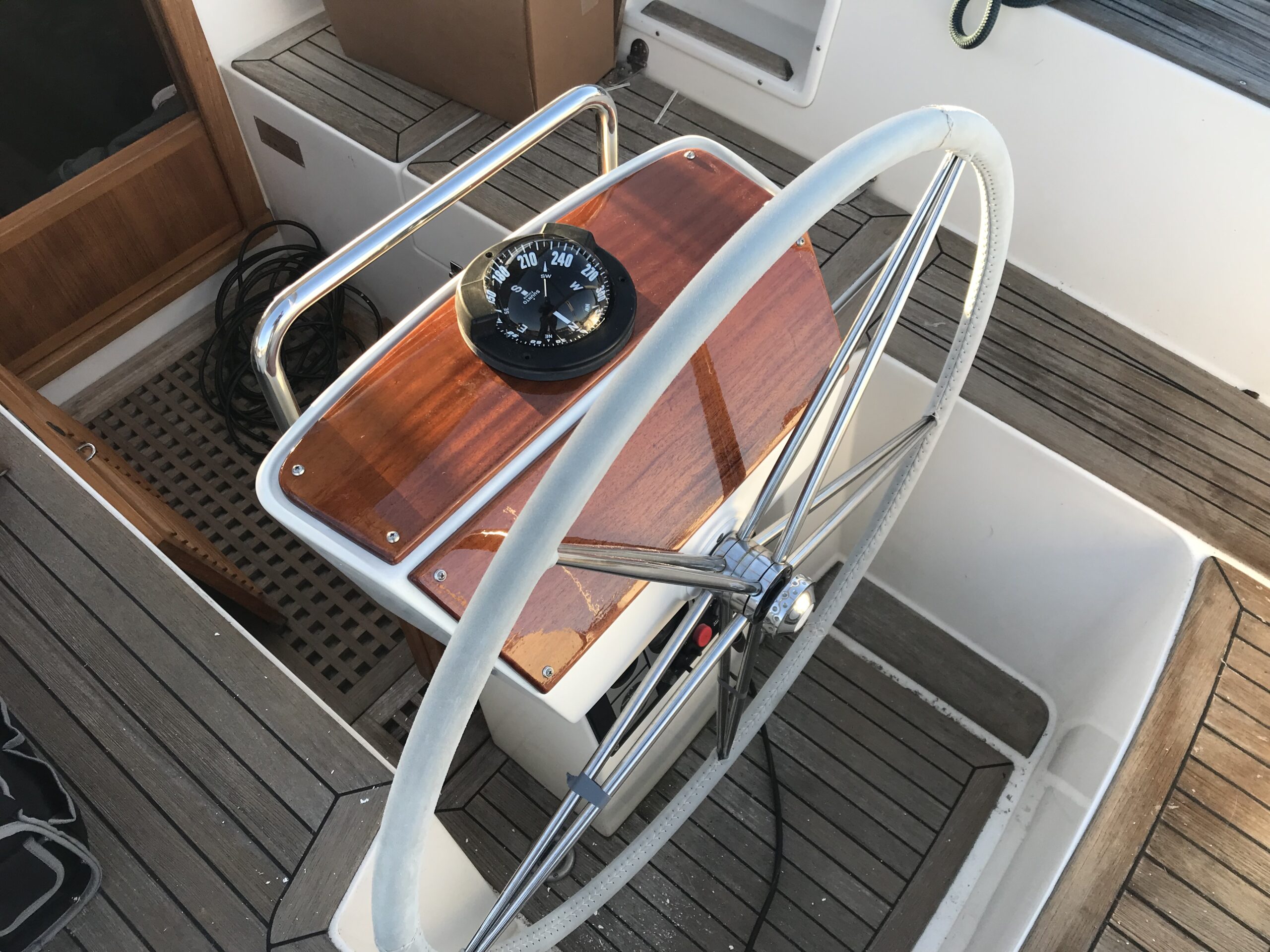 Denna HR46 skulle uppgradera elsystemet och alla instrument. Därför hjälpte vi en kollega i branschen att tillverka och montera paneler i massiv mahogny på styrpiedestalen för att täcka gamla hål och montera instrumenten på.