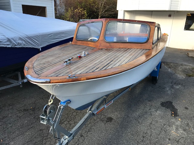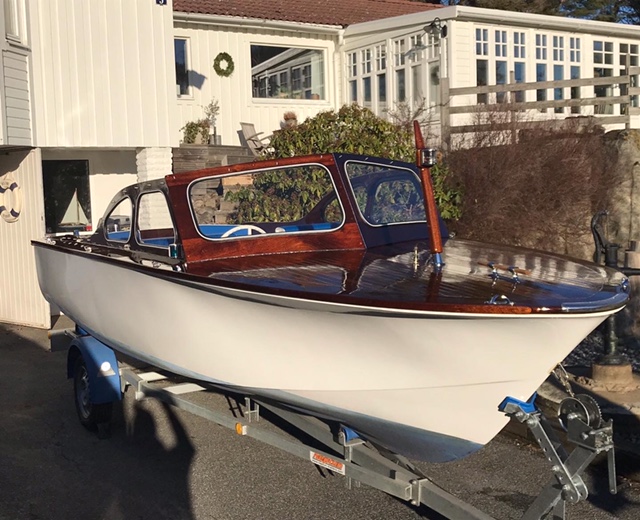 Ny däcksstomme, däck, öppningsbar framruta, allt trä slipat och lackat, nya rutor och lister, ny gösstake, nya lanternor, nya förtöjningsbeslag, nytt hamnkapell
