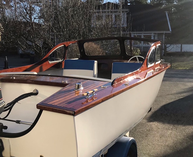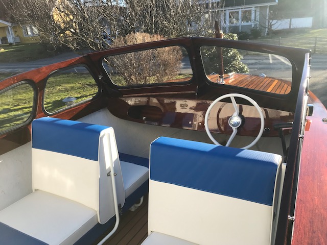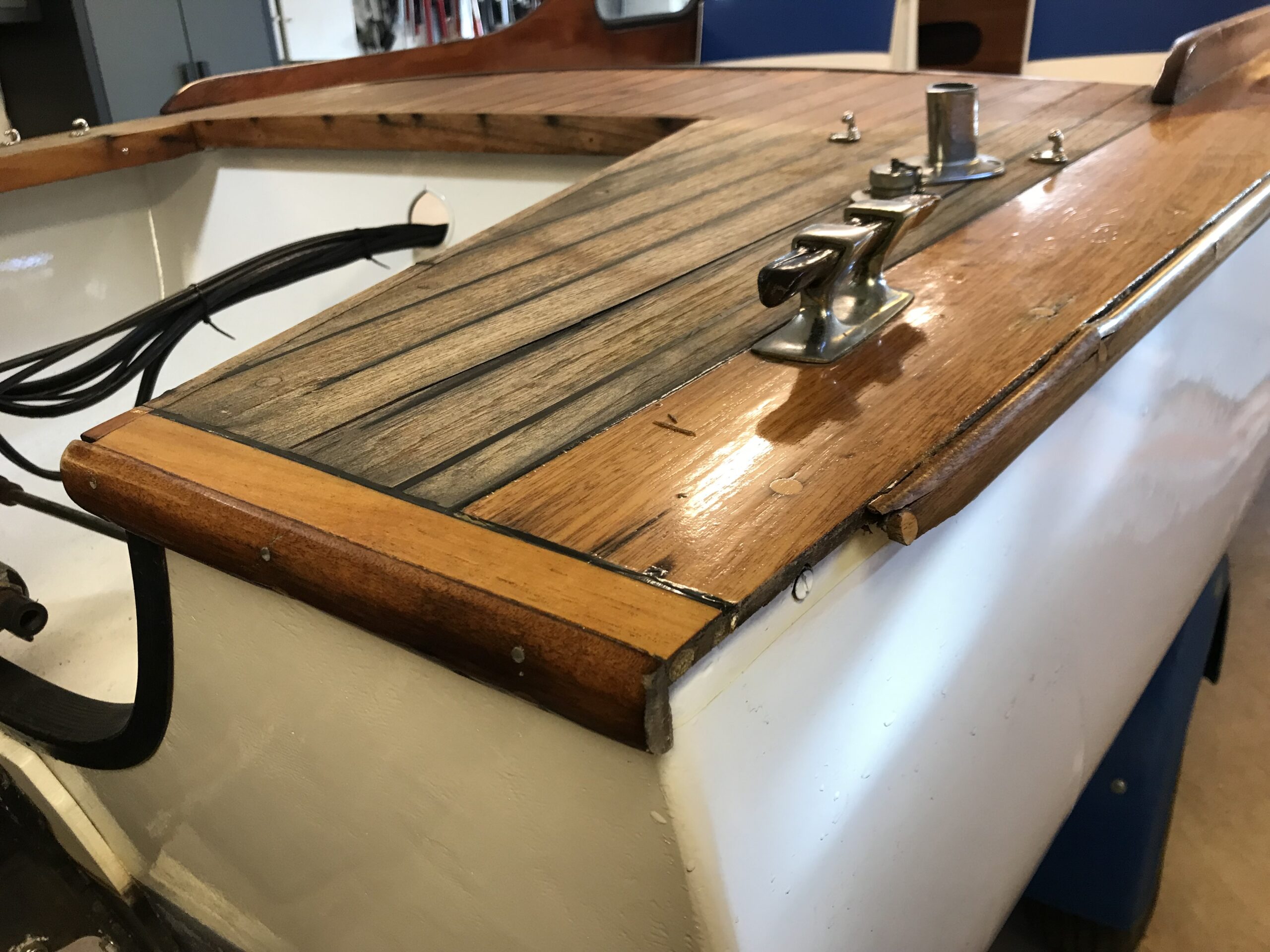Så fördäcket fick rivas och ny stomme byggas innan nytt däck kunde läggas på plats. Det mesta av teakribborna kunde återvinnas efter en vända i såg och hyvel. Ny instrumentpanel och framrutan byggdes om till öppningsbar.