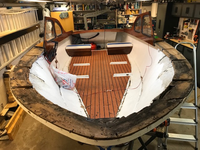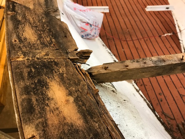 Den nyblivna ägaren ville få ett stabilare fördäck och båten i toppskick. Efter närmare koll var hela stommen till fördäck sönderrutten och tidigare ägare stöttat upp med trallvirke!